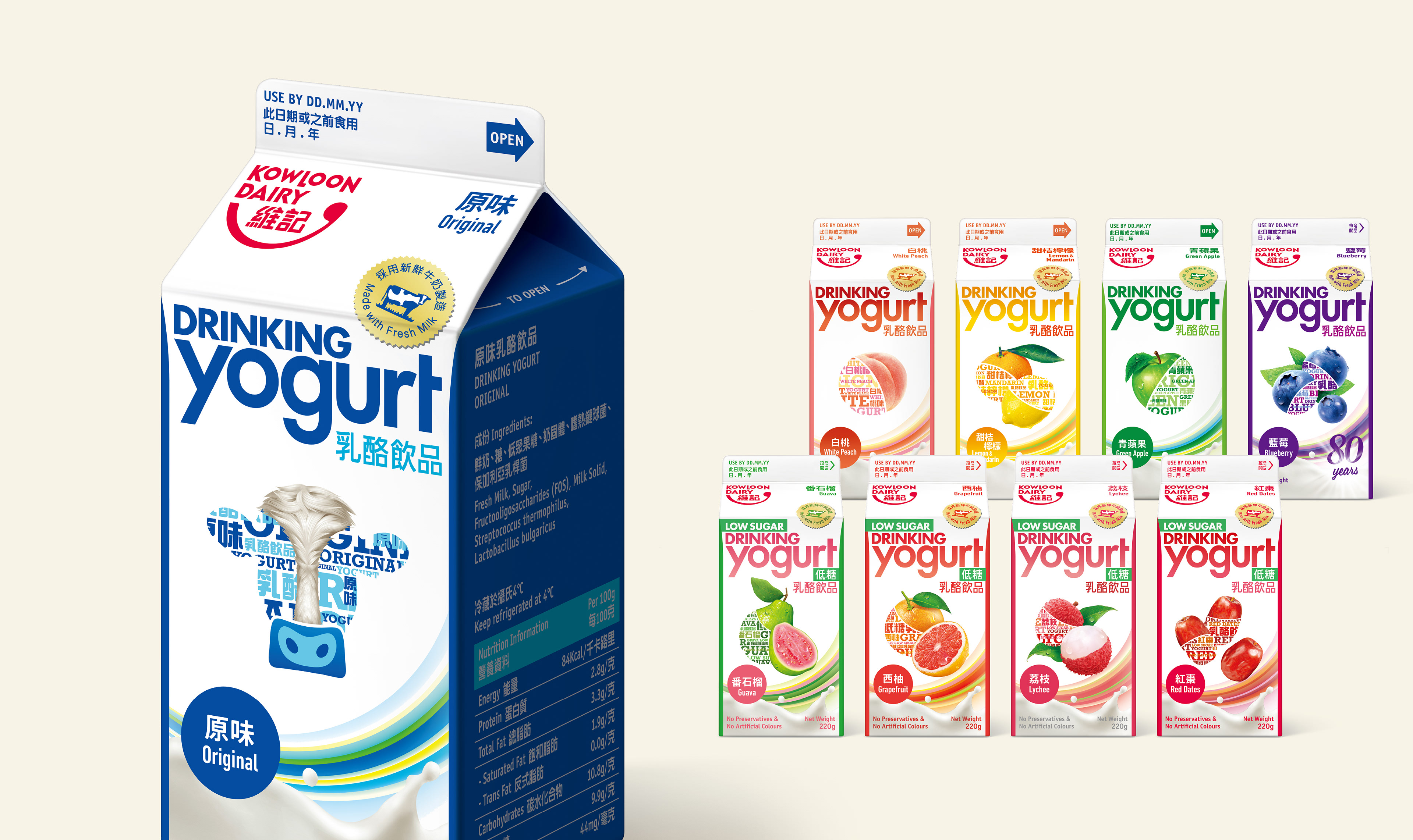 We created the bi-lingual typographical labelling for all of the products including soy bean milk and yoghurt.