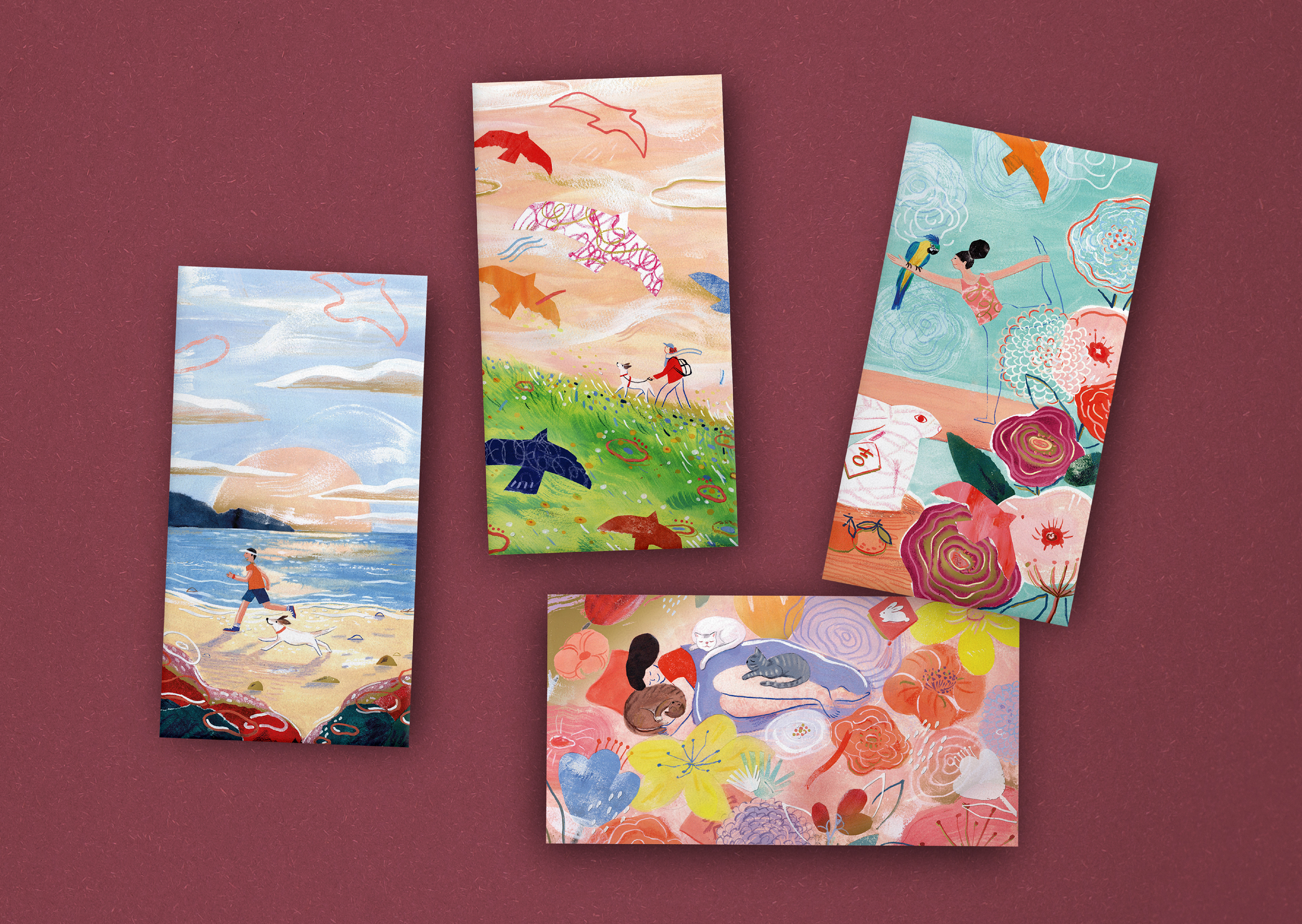 Inspired by our very first series of packets "Home is where the heart is", from 2012, the idea of 'Home' is seen this year in a slightly new context. The 2021 series illustrates the ever adaptable and pragmatic spirit of Hong Kong, as we rise to the challenge of celebrating this very new new year within the parameters of social responsibility.